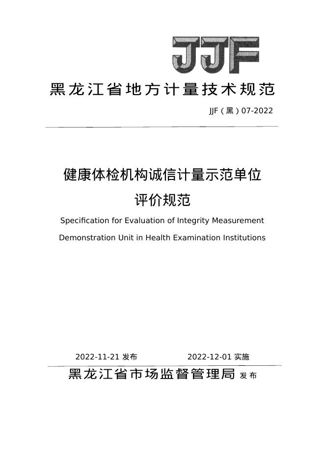 JJF(黑)07-2022 健康体检机构诚信计量示范单位评价规范