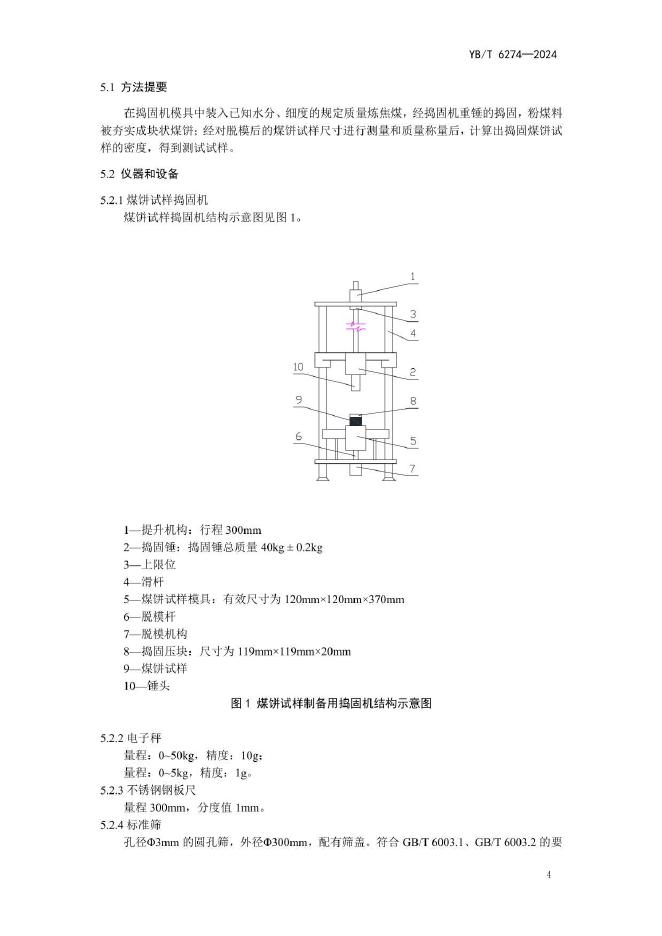 YB/T 6274-2024 炼焦煤捣固性能测定方法