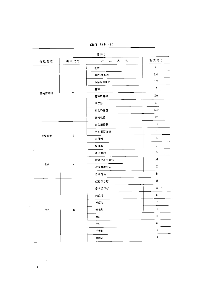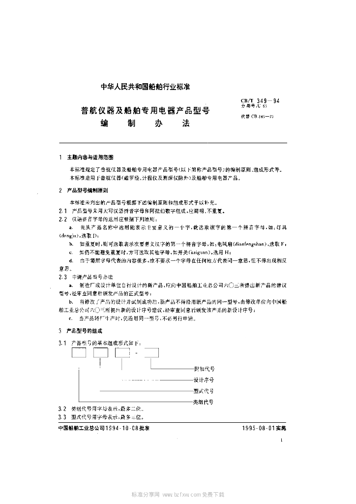 CB/T 349-1994 普航仪器及船舶专用电器产品型号编制办法