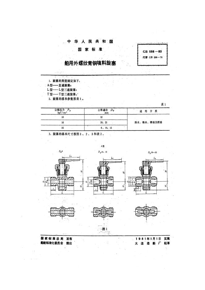 GB/T 598-1980 船用外螺纹青铜填料旋塞