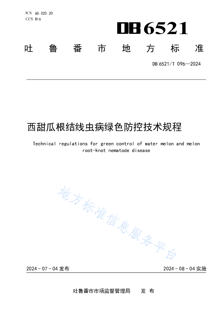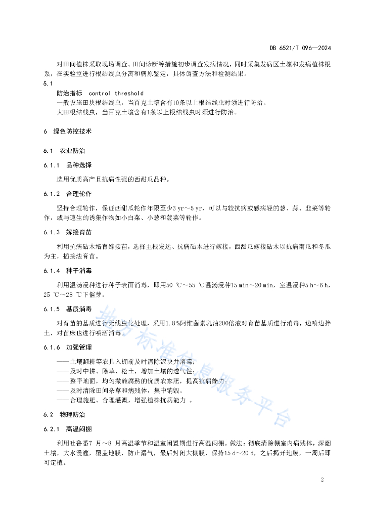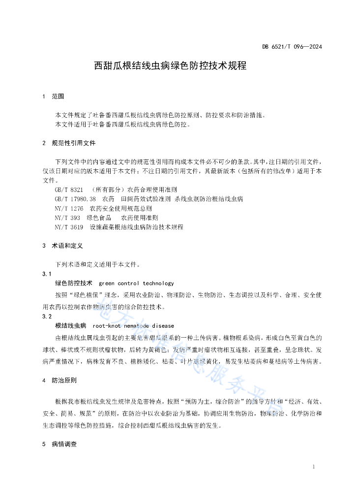 DB6521/T 096-2024 西甜瓜根结线虫病绿色防控技术规程