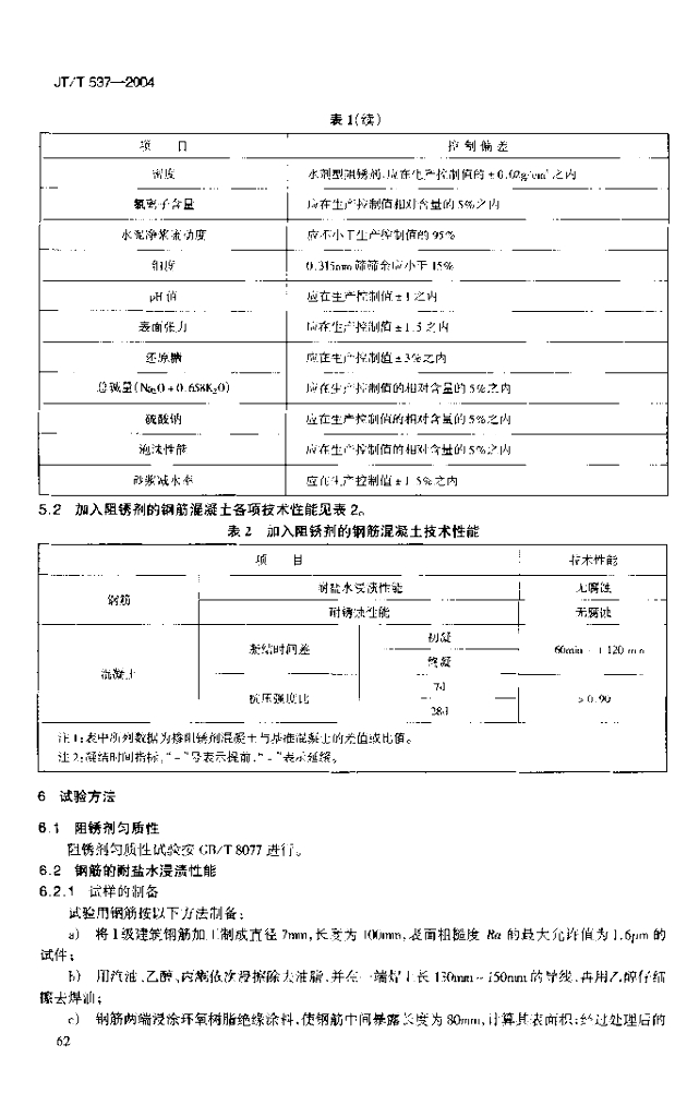 JT/T 537-2004 钢筋混凝土阻锈剂