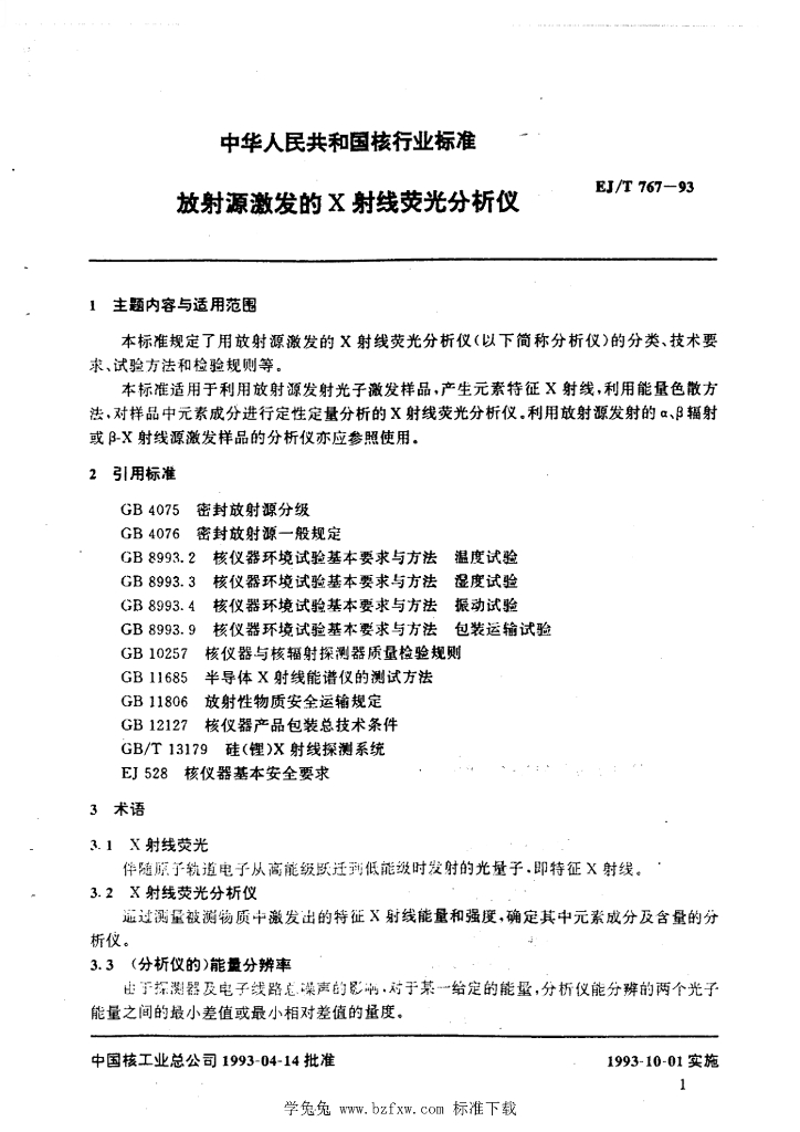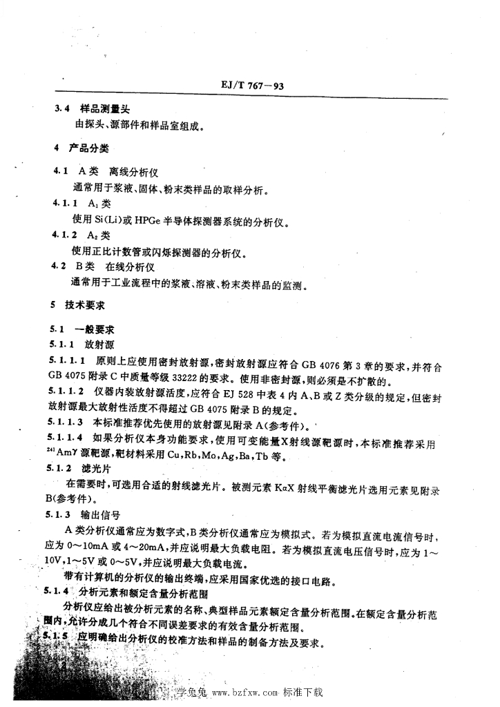 EJ/T 767-1993 放射源激发的X射线荧光分析仪