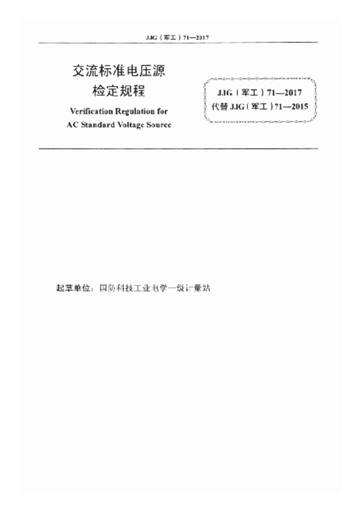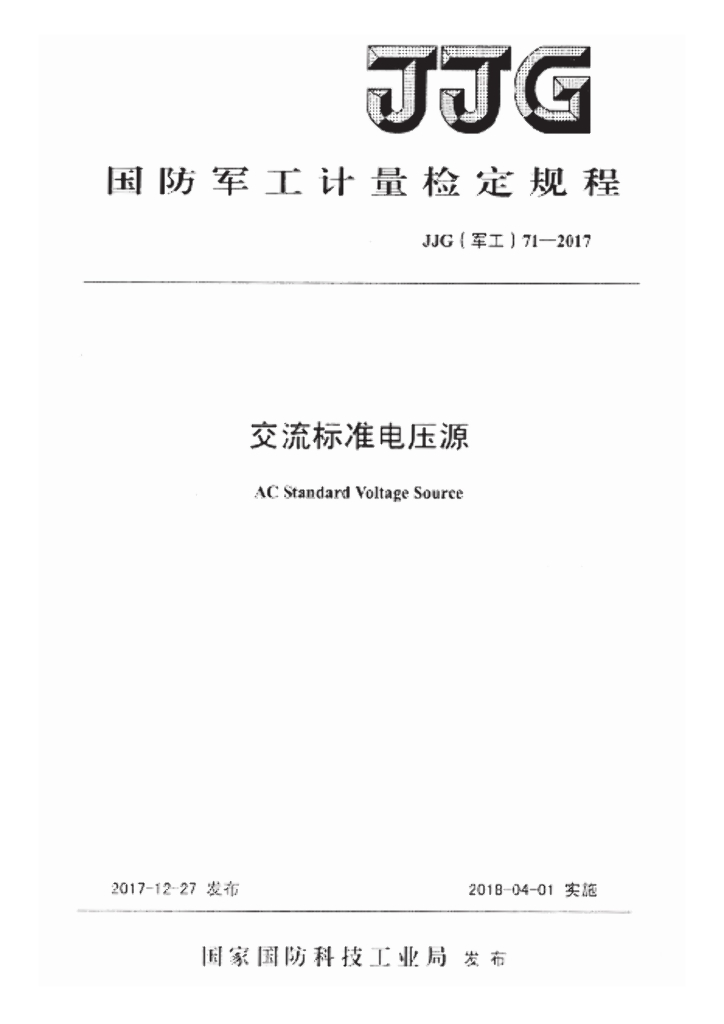 JJG(军工)71-2017 交流标准电压源检定规程