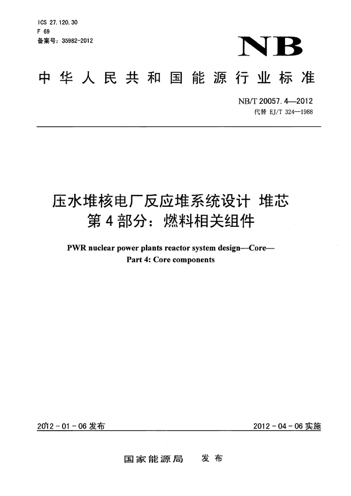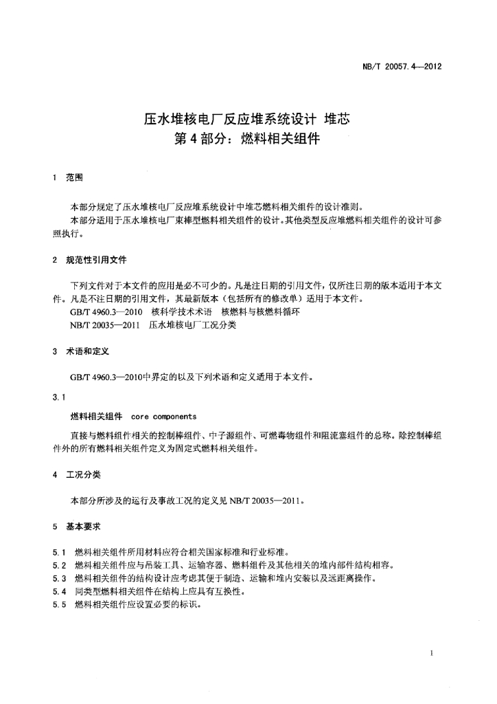 NB/T 20057.4-2012 压水堆核电厂反应堆系统设计堆芯 第4部分:燃料相关组件