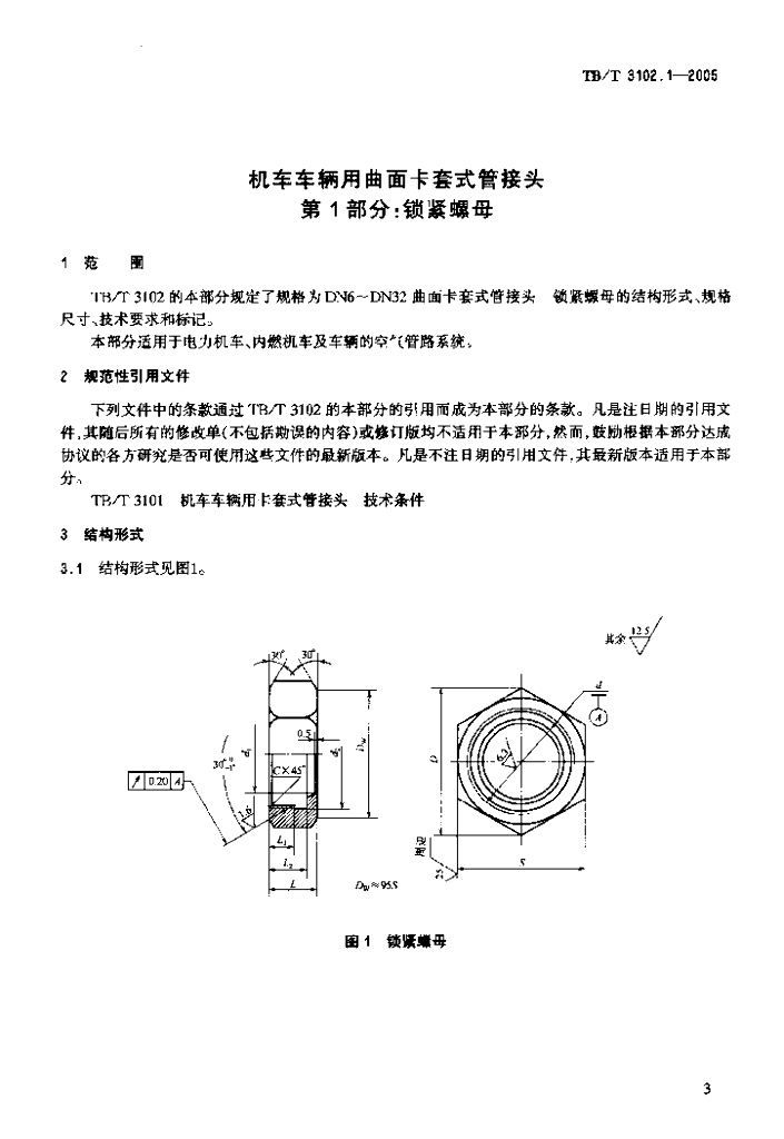 TB/T 3102.1-2005 机车车辆用曲面卡套式管接头 第1部分:锁紧螺母