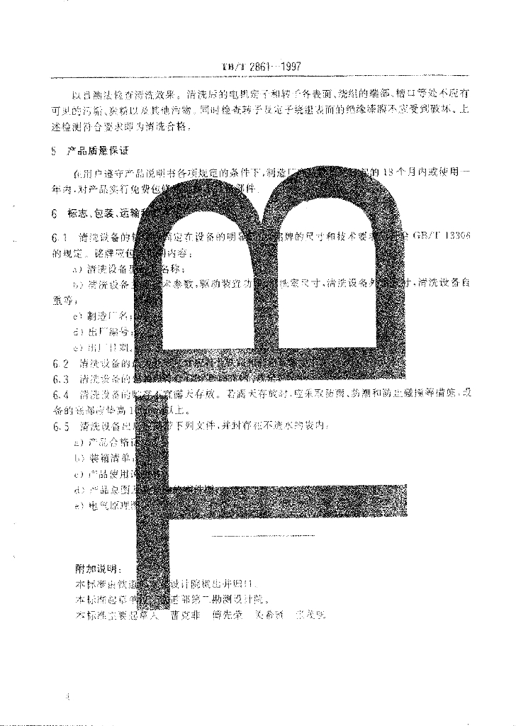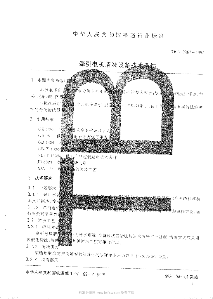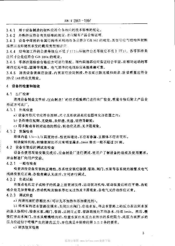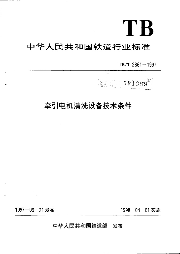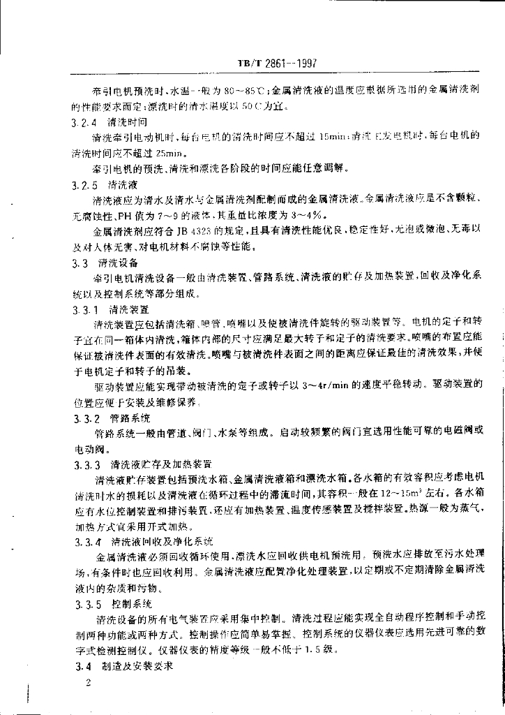 TB/T 2861-1997 牵弓电机清洗设备技术条件