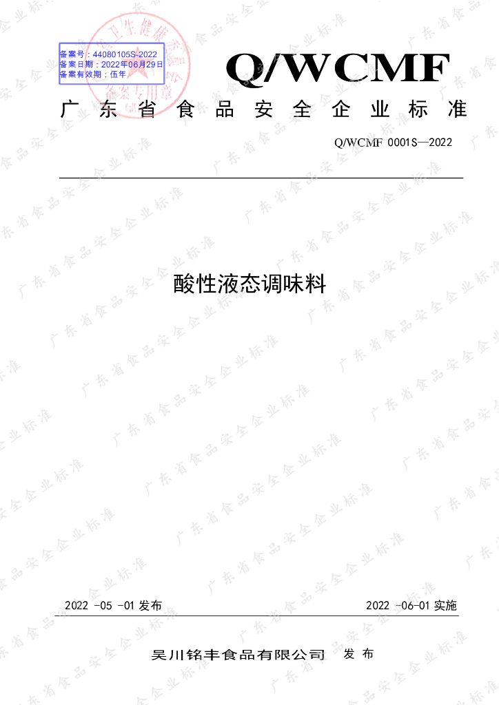 Q/WCMF 0001S-2022 酸性液态调味料