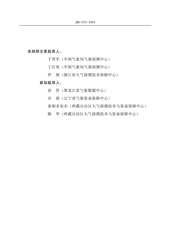 于贺军(中国气象局气象探测中心)、丁红英(中国气象局气象探测中心)、罗昶(浙江省大气探测技术保障中心)、孙哲(黑龙江省气象数据中心)、沙莉(辽宁省气象装备保障中心)、索朗多布杰(西藏自治区大气探测技术与装备保障中心)、陈华(西藏自治区大气探测技术与装备保障中心)