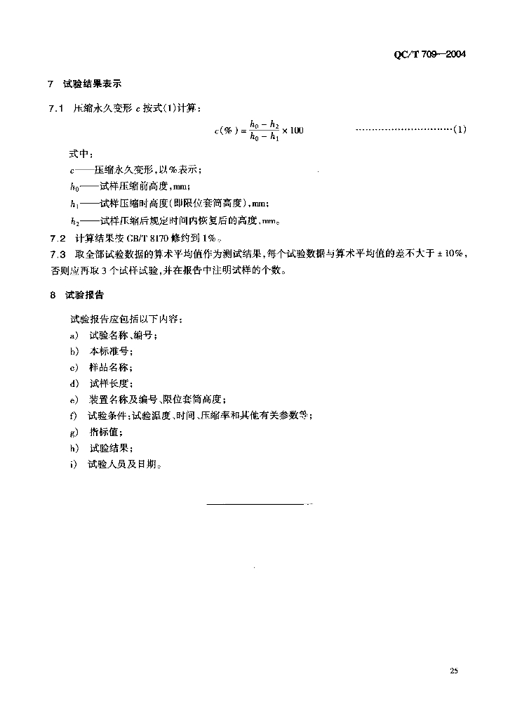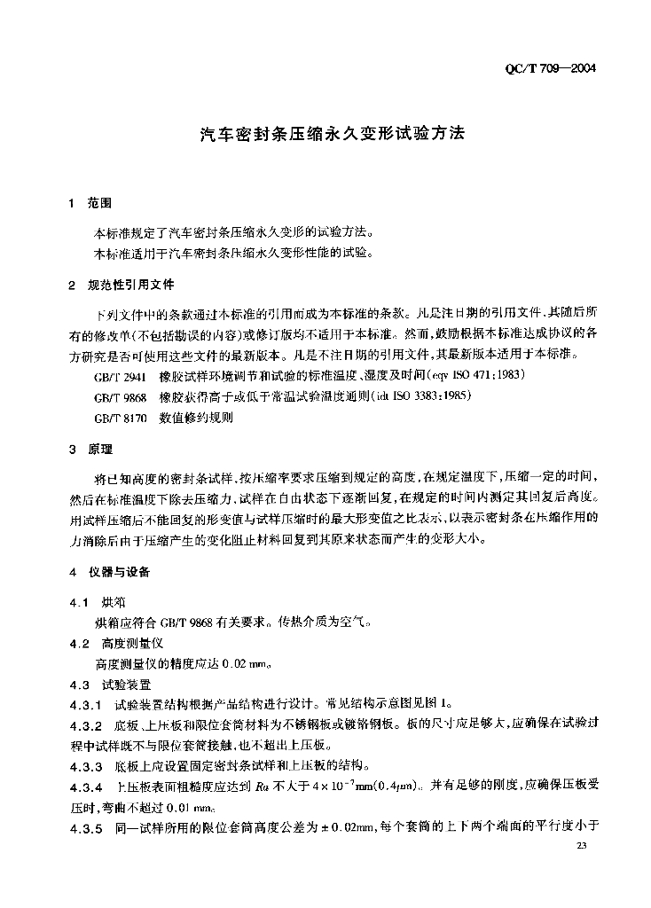 QC/T 709-2004 汽车密封条压缩永久变形试验方法