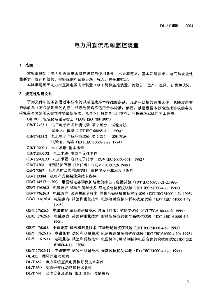 DL/T 856-2004 电力用直流电源监控装置