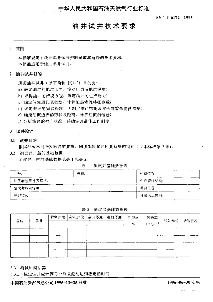 SY/T 6172-1995 油井试井技术要求