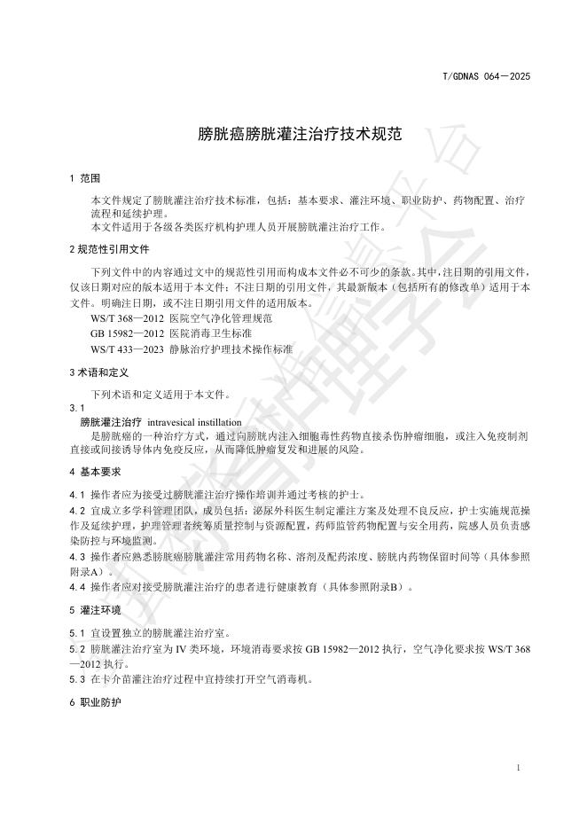 T/GDNAS 064-2025 膀胱癌膀胱灌注治疗技术规范