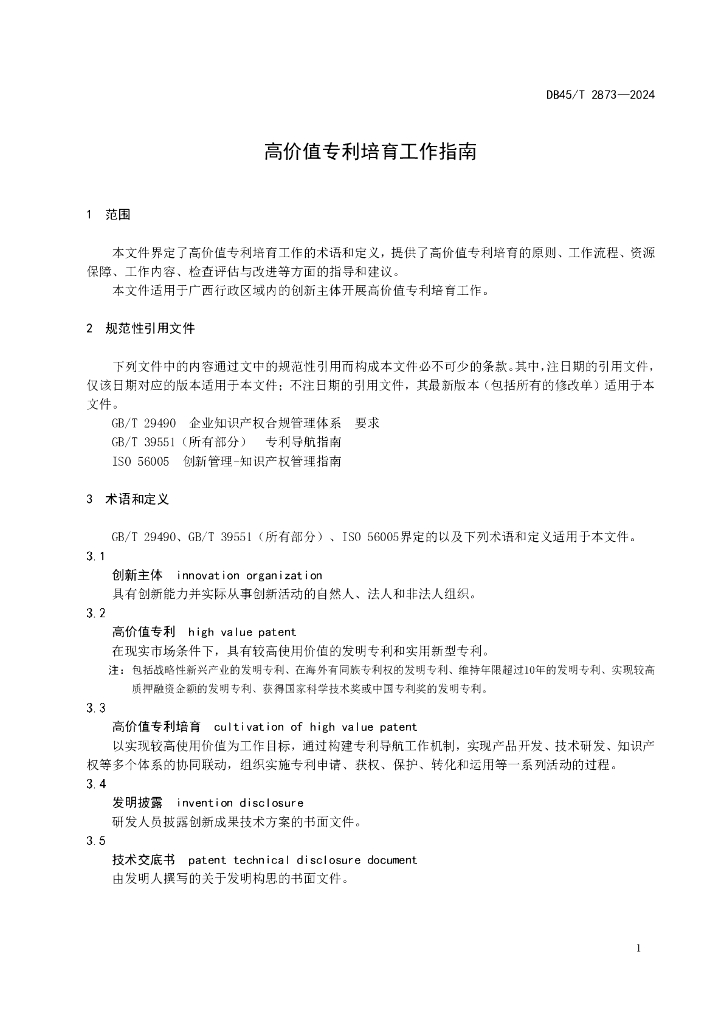 DB45/T 2873-2024 高价值专利培育工作指南