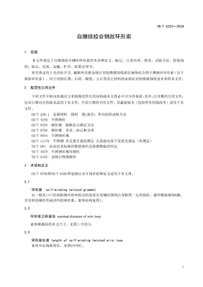 YB/T 6292-2024 自缠绕绞合钢丝环形索