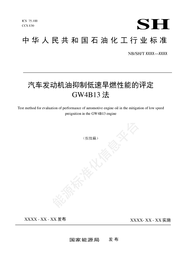 NB/SH/T 6066-2022 汽车发动机油抑制低速早燃性能的评定 GW4B13法