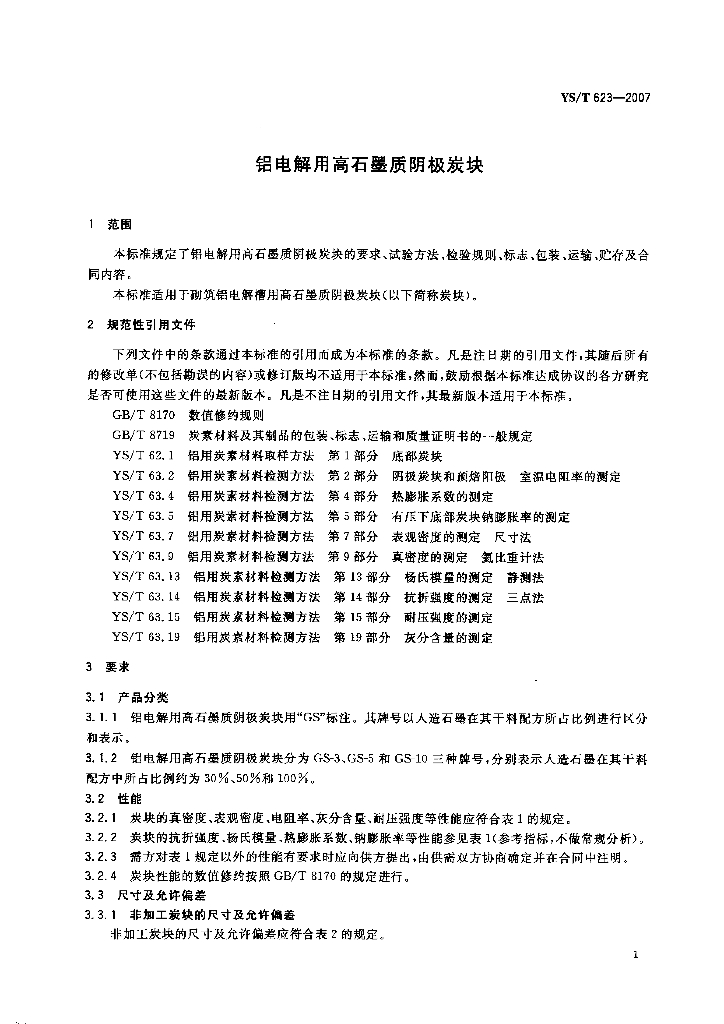 YS/T 623-2007 铝电解用高石墨质阴极炭块