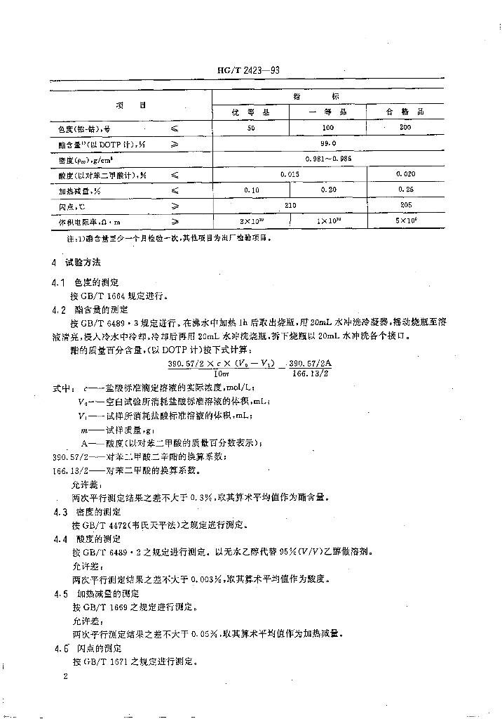 HG/T 2423-1993 对苯二甲酸二辛酯
