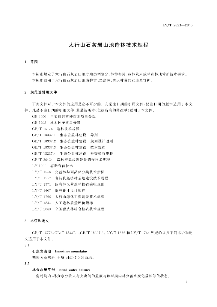 LY/T 2623-2016 太行山石灰岩山地造林技术规程