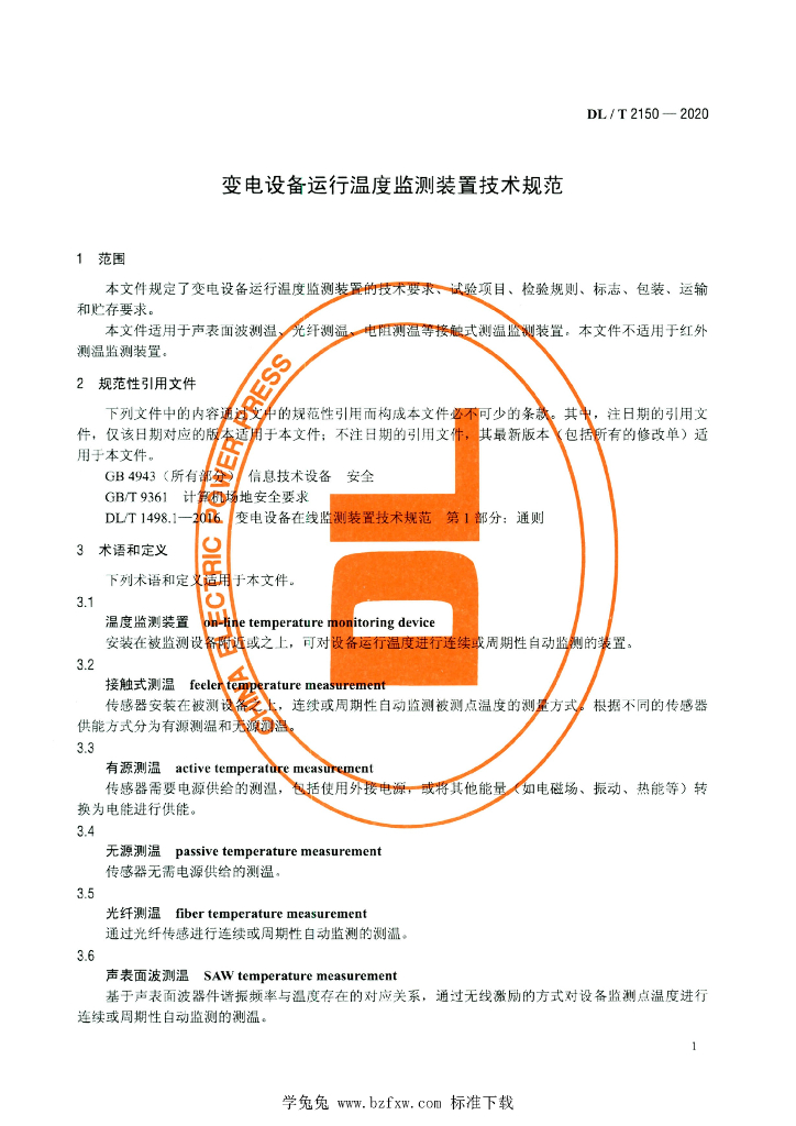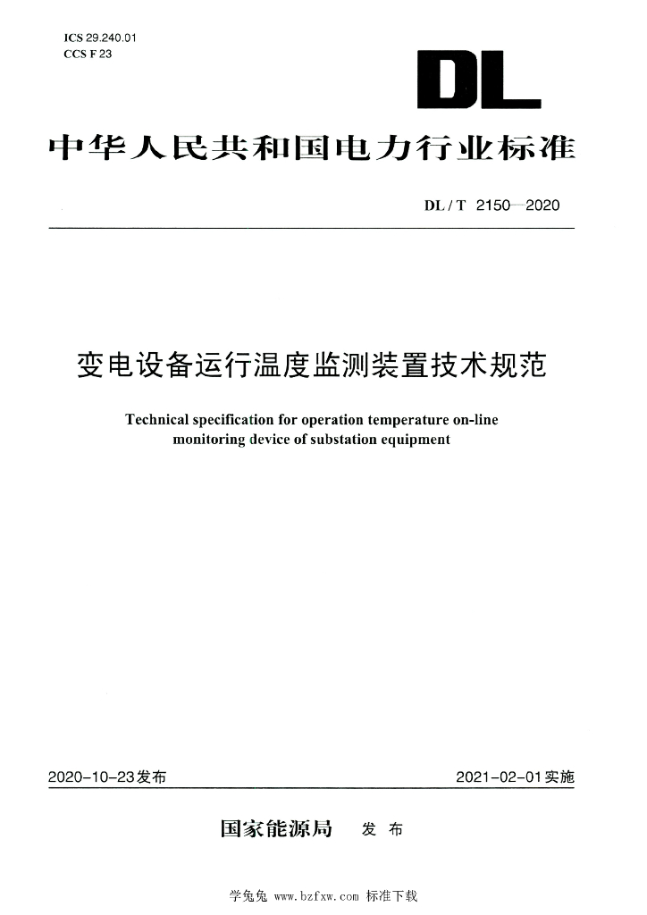 DL/T 2150-2020 变电设备运行温度监测装置技术规范