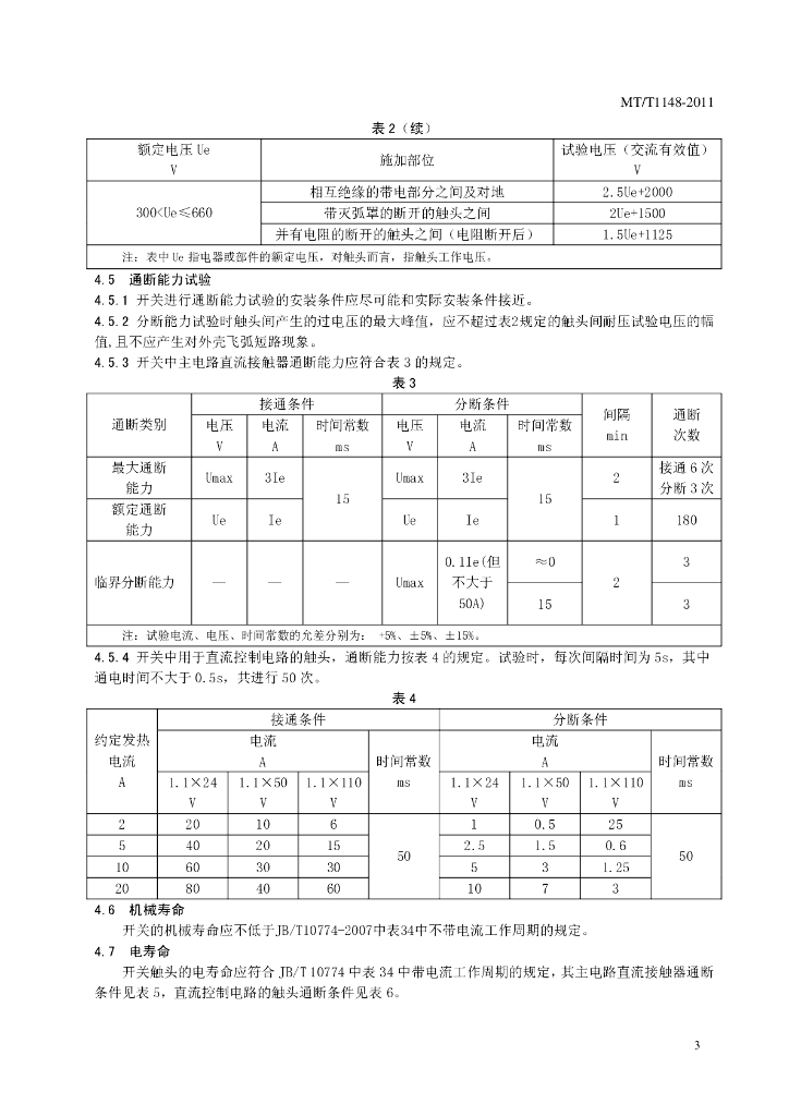 MT/T 1148-2011 架线电机车用自动停送电开关