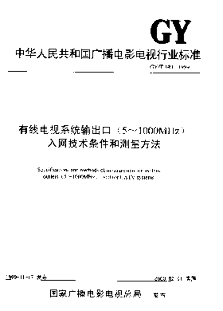 GY/T 140-1999 有线电视系统输出口(5~ 1000MHz)入网技术条件和测量方法