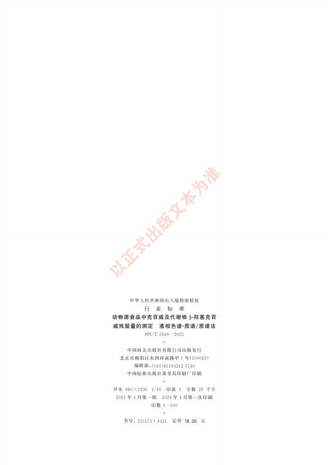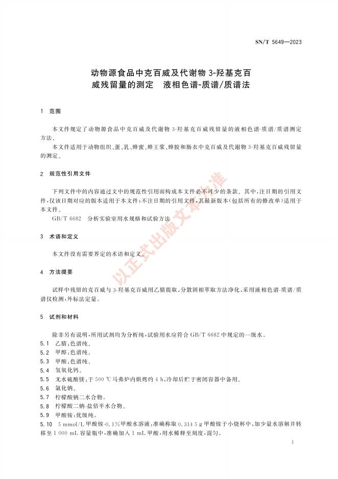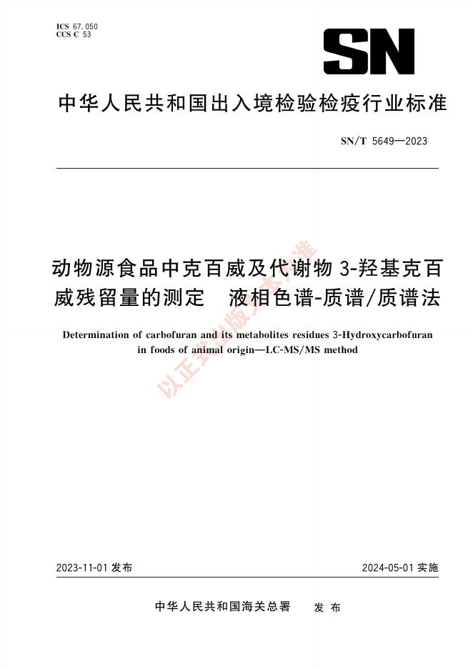 SN/T 5649-2023 动物源食品中克百威及代谢物3-羟基克百威残留量的测定 液相色谱-质谱/质谱法