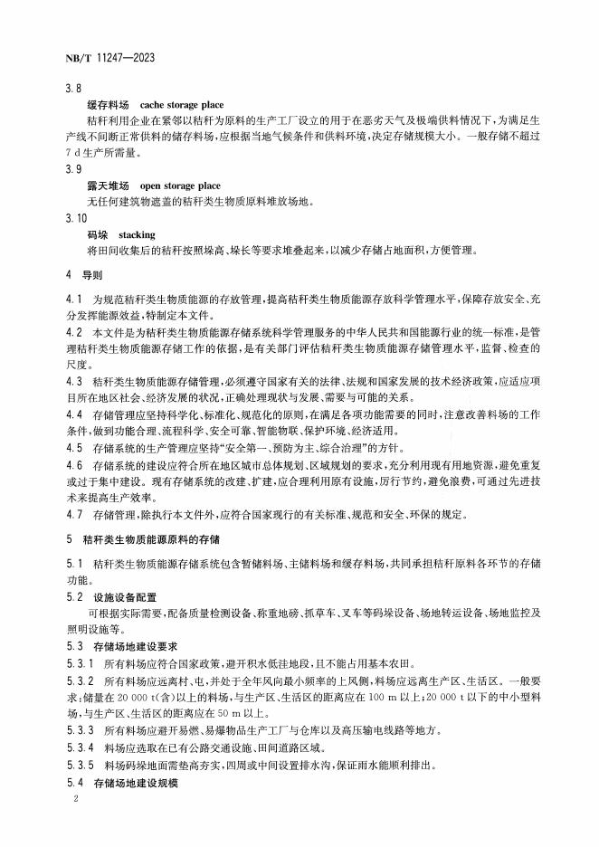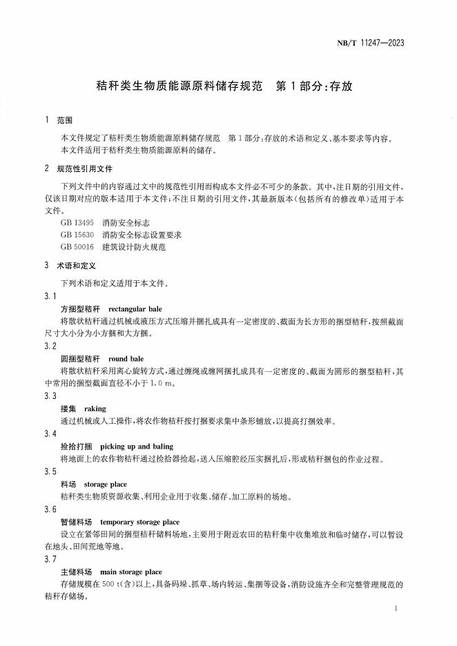 NB/T 11247-2023 秸秆类生物质能源原料储存规范 第1部分:存放