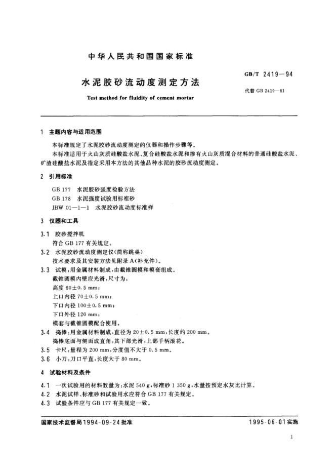 GB/T 2419-1994 水泥胶砂流动度测定方法