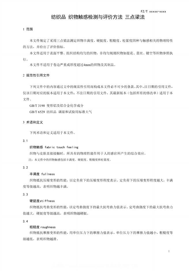 FZ/T 01171-2023 纺织品 织物触感检测与评价方法 三点梁法(报批稿)