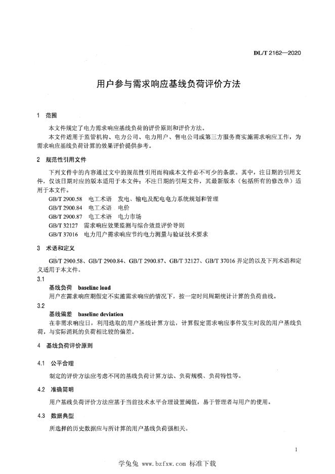 DL/T 2162-2020 用户参与需求响应基线负荷评价方法