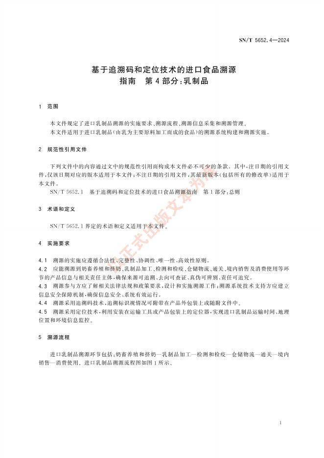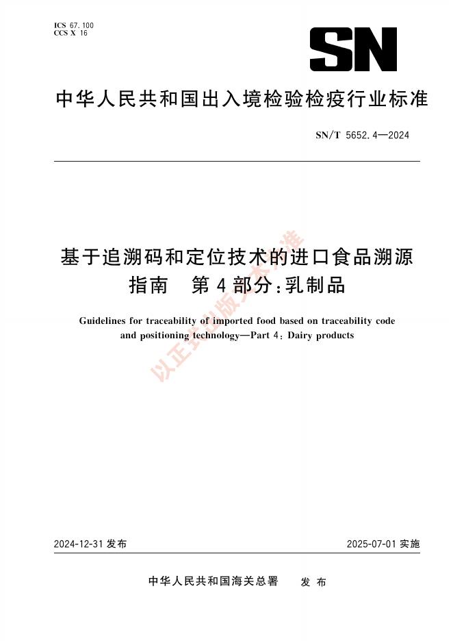 SN/T 5652.4-2024 基于追溯码和定位技术的进口食品溯源指南 第4部分:乳制品