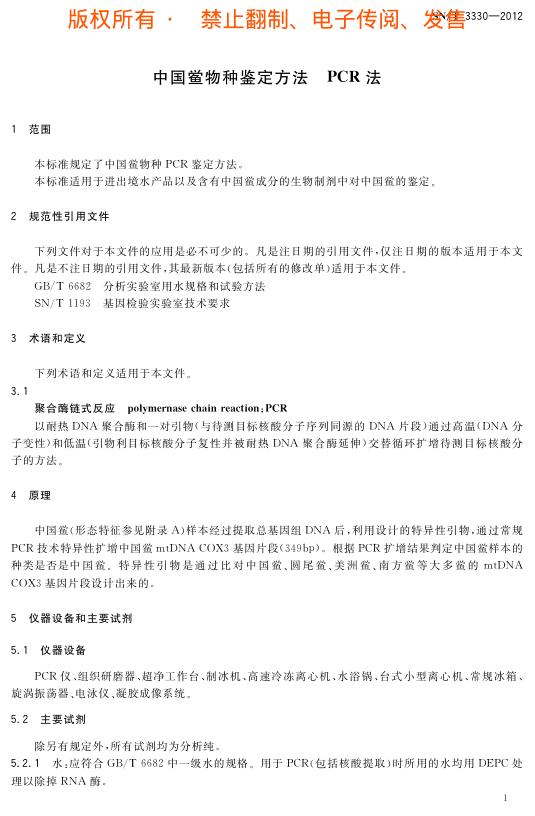 SN/T 3330-2012 中国鲎物种鉴定方法 PCR方法