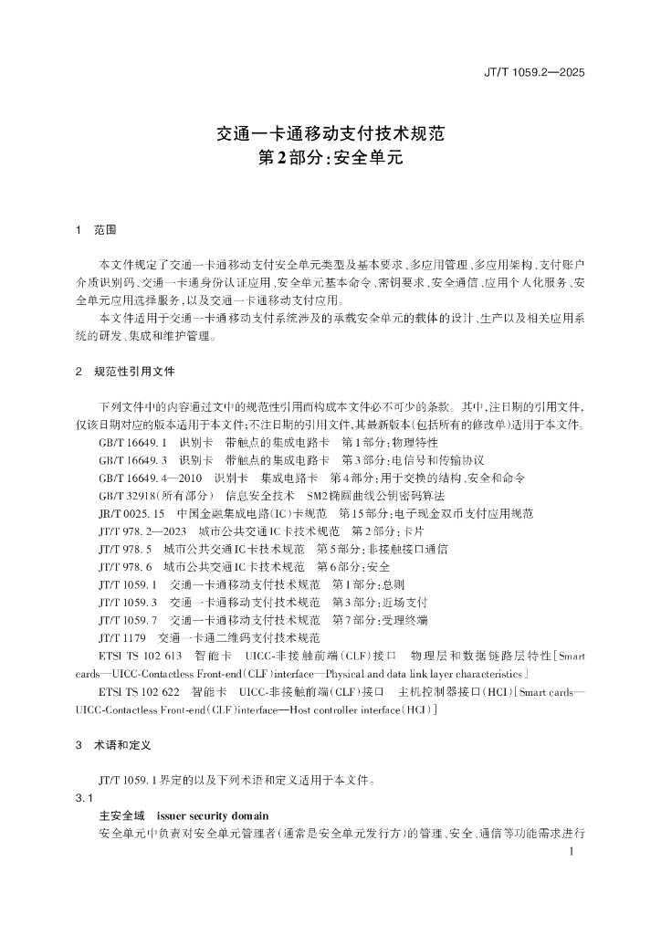 JT/T 1059.2-2025 交通一卡通移动支付技术规范 第2部分:安全单元