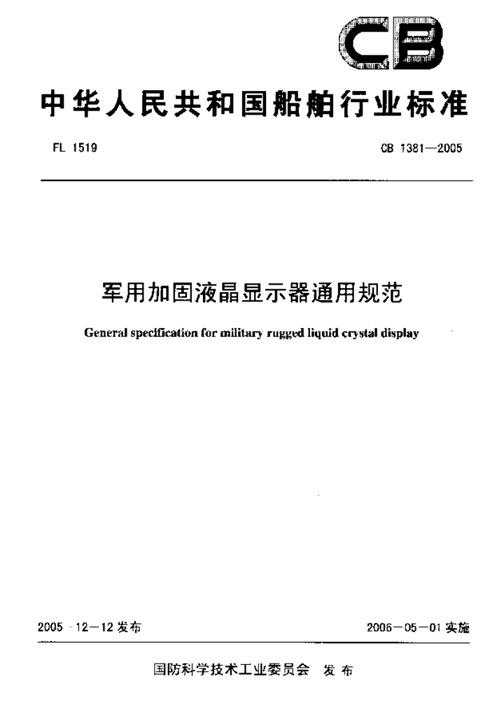 CB 1381-2005 军用加固液晶显示器通用规范