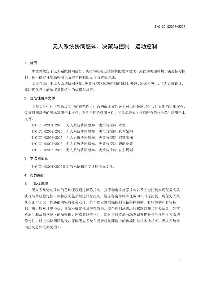 T/CICC 02006-2025 无人系统协同感知、决策与控制 运动控制