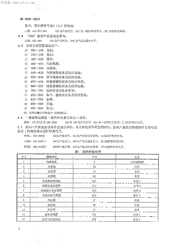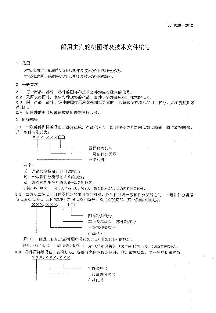 CB 1028-2012 船用主汽轮机图样及技术文件编号