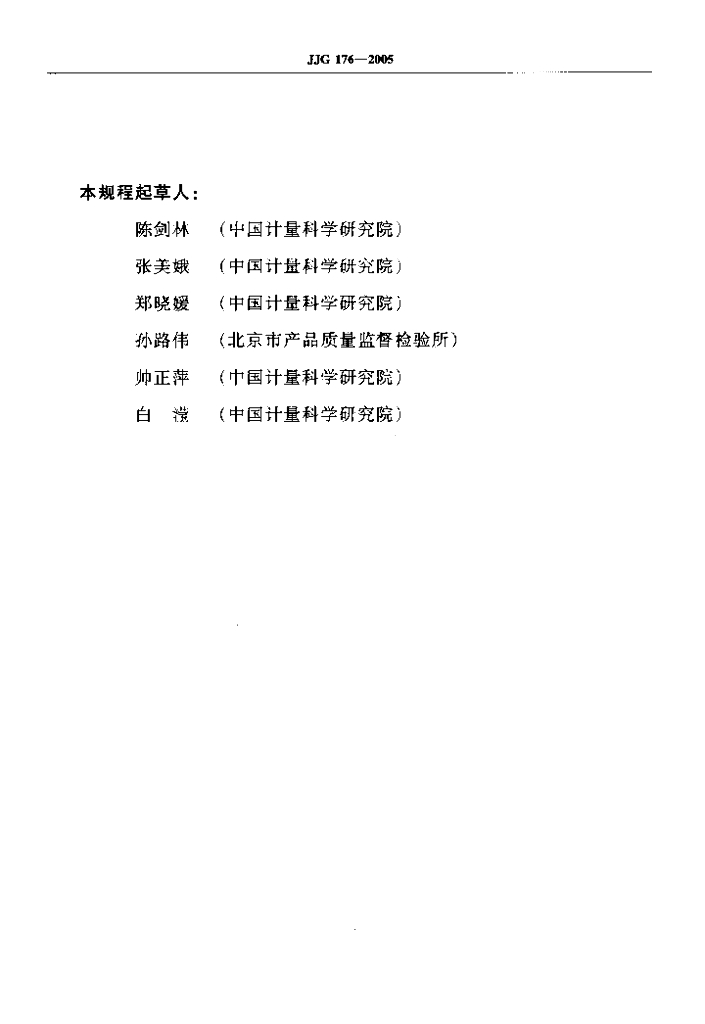 陈剑林(中国计量科学研究院)、张美娥(中国计量科学研究院)、郑晓媛(中国计量科学研究院)、孙路伟(北京市产品质量监督检验所)、帅正萍(中国计量科学研究院)、白滢(中国计量科学研究院)