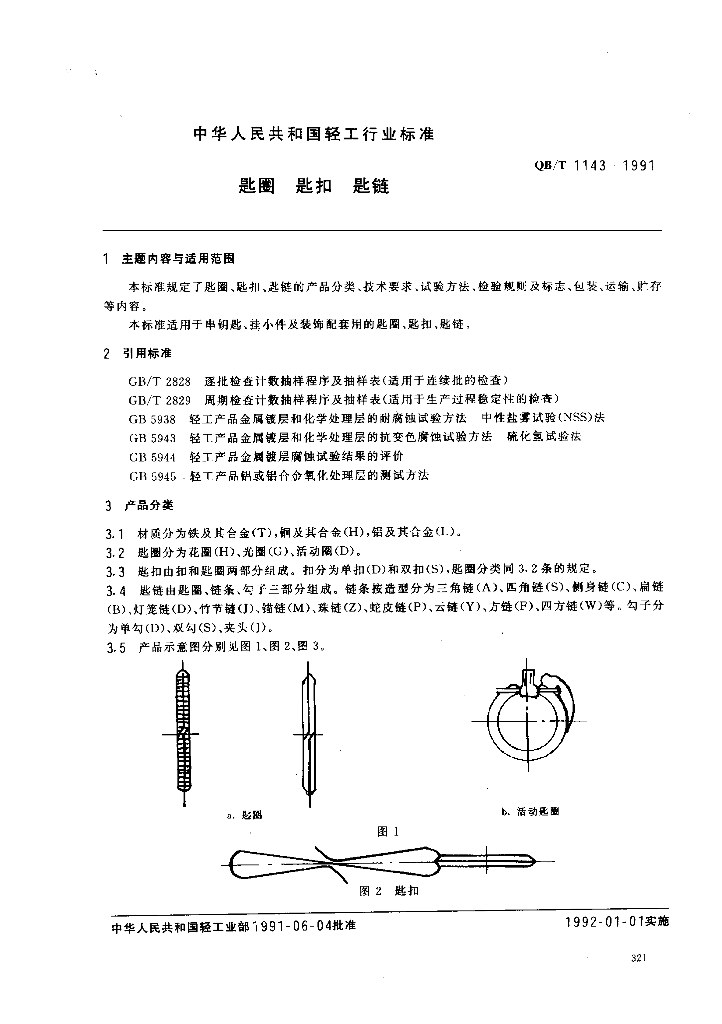QB/T 1143-1991 匙圈匙扣匙链