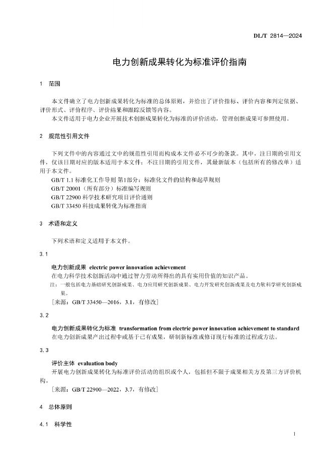 DL/T 2814-2024 电力创新成果转化为标准评价指南