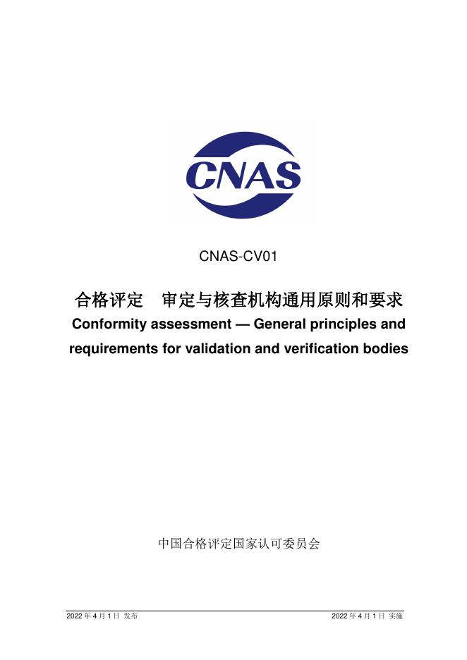 CNAS-CV01-2022 合格评定审定与核查机构通用原则和要求