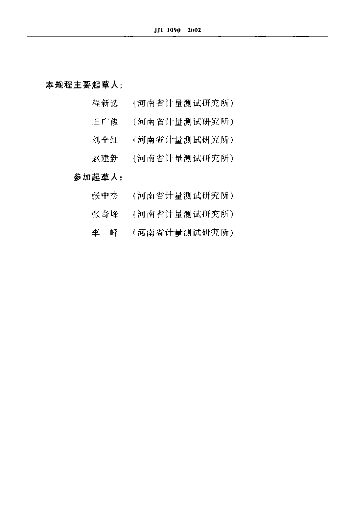程新选(河南省计量测试研究所)、王广俊(河南省计量测试研究所)、刘全红(河南省计量测试研究所)、赵建新(河南省计量测试研究所)、张中杰(河南省计量测试研究所)、张奇峰(河南省计量测试研究所)、李峰(河南省计量测试研究所)