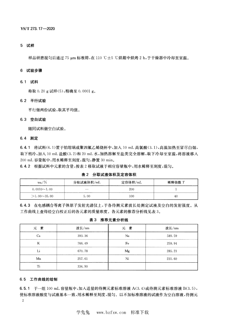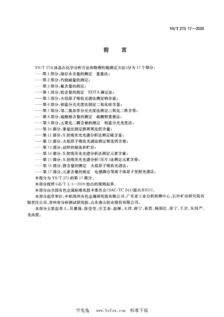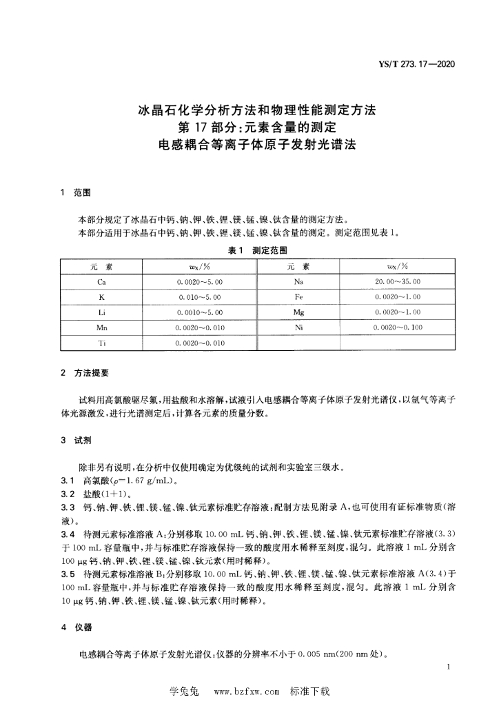 YS/T 273.17-2020 冰晶石化学分析方法和物理性能测定方法 第17部分:元素含量的测定 电感耦合等离子体原子发射光谱法