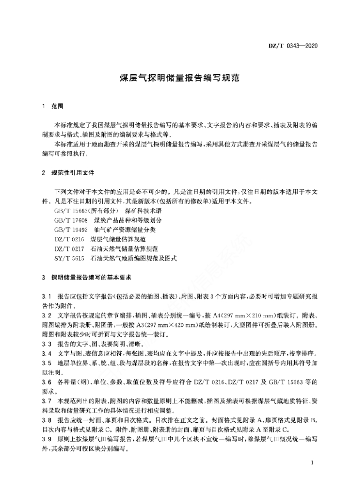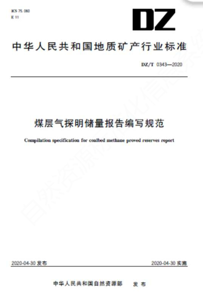 DZ/T 0343-2020 煤层气探明储量报告编写规范