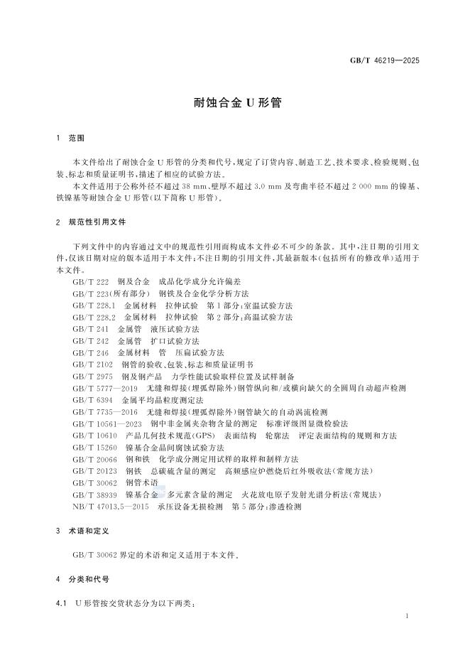 GB/T 46219-2025 耐蚀合金U形管