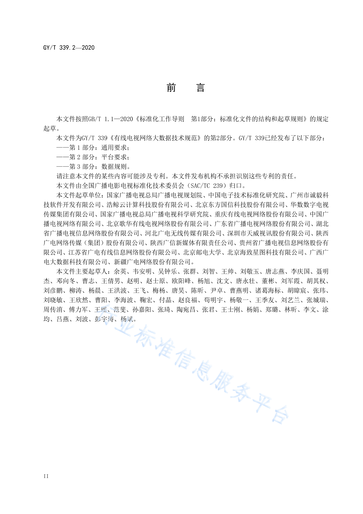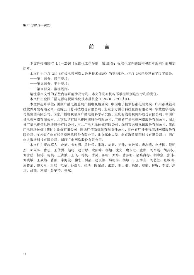 国家广播电视总局广播电视规划院、中国电子技术标准化研究院、广州市诚毅科技软件开发有限公司、浩鲸云计算科技股份有限公司、北京东方国信科技股份有限公司、华数数字电视传媒集团有限公司、国家广播电视总局广播电视科学研究院、重庆有线电视网络股份有限公司、中国广播电视网络有限公司、北京歌华有线电视网络股份有限公司、广东省广播电视网络股份有限公司、湖北省广播电视信息网络股份有限公司、河北广电无线传媒有限公司、深圳市天威视讯股份有限公司、陕西广电网络传媒(集团)股份有限公司、陕西广信新媒体有限责任公司、