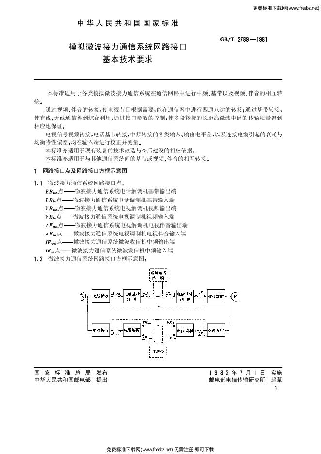 GB/T 2789-1981 模拟微波接力通信系统网路接口基本技术要求
