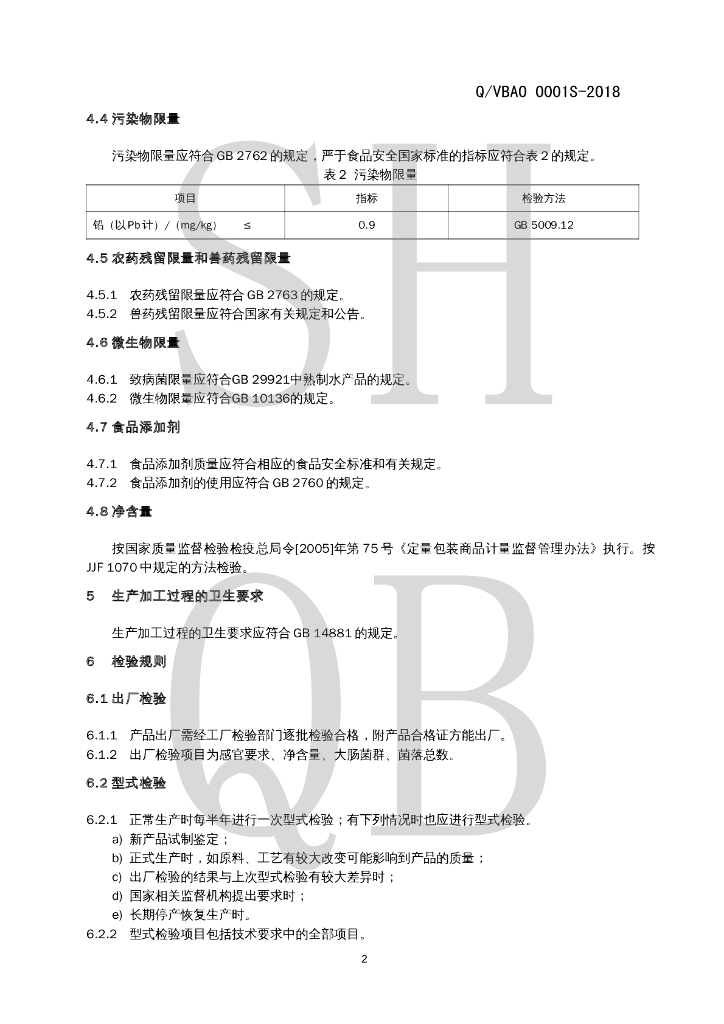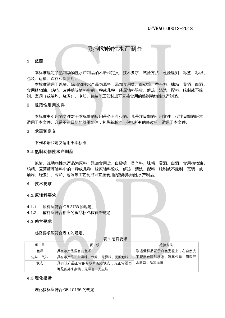 Q/VBAO 0001S-2018 熟制动物性水产制品