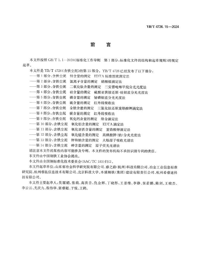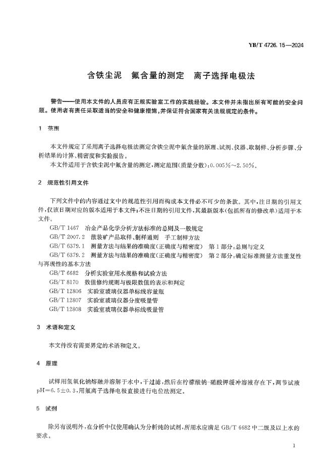 YB/T 4726.15-2024 含铁尘泥 氟含量的测定 离子选择电极法