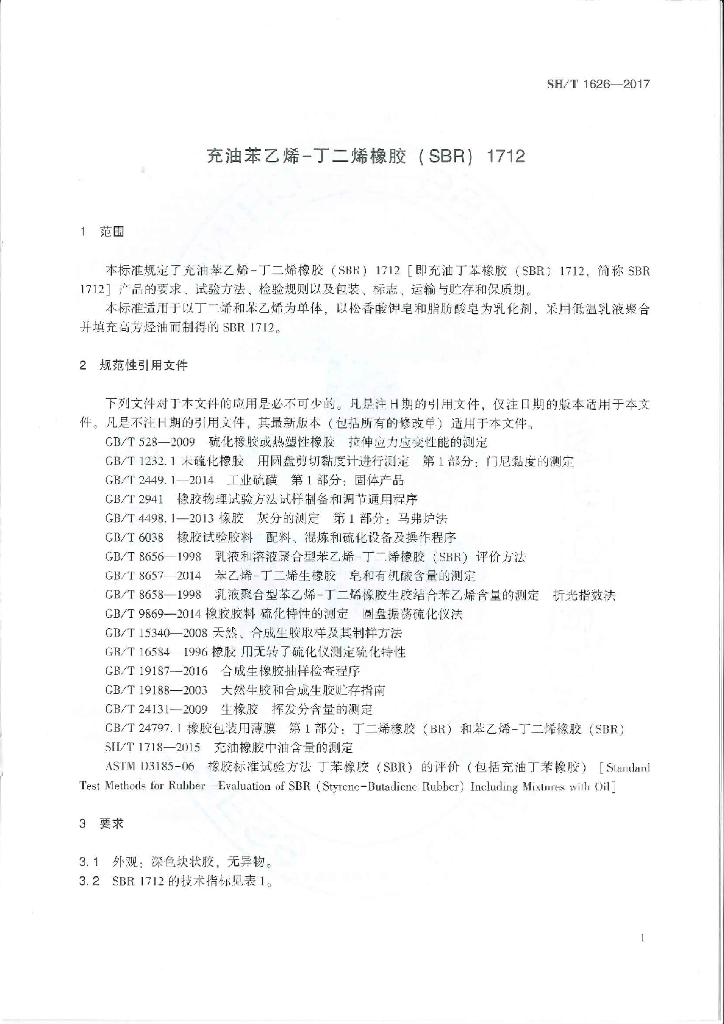 SH/T 1626-2017 充油苯乙烯-丁二烯橡胶(SBR)1712